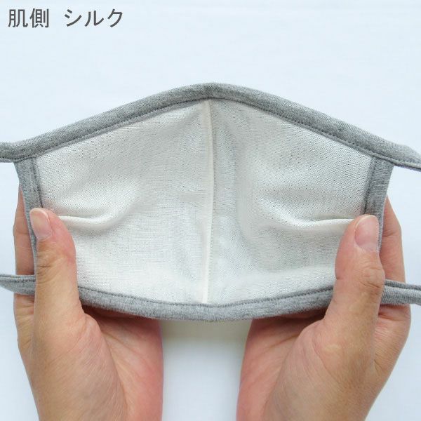 肌側にはシルク100%の生地を使用し、滑らかな肌触りです。
