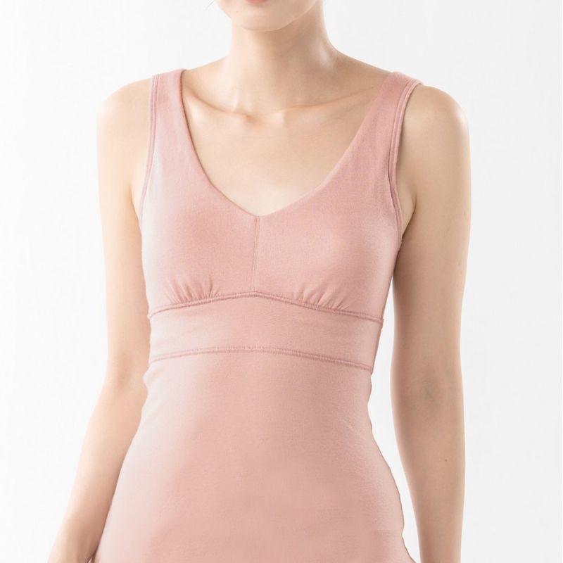スマイルコットン社の素材でつくったバストを柔らかく包み込むカップ付タンクトップ(ブラキャミ)。
