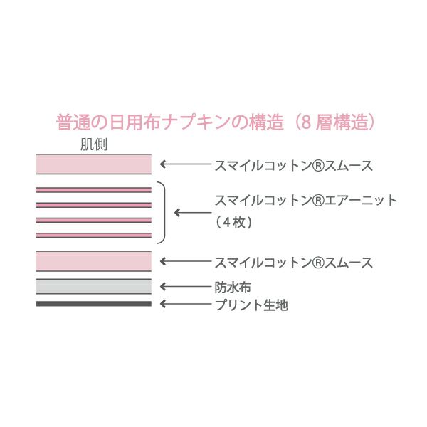 わたのようにやわらかく、やさしい肌触りの布ナプキン。