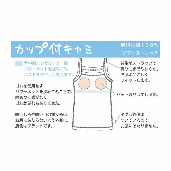 肌側が綿100%になるように作っているので、心地よい肌あたりです。
