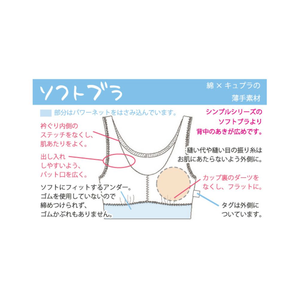 シンプルソフトブラ【81051】より背中のあきが広めで清涼感のある設計です。