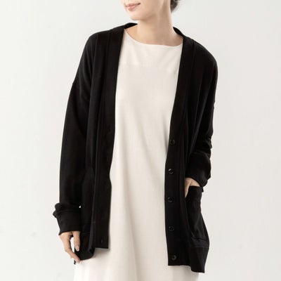 軽くて肌触りがいいです 腕周りがゆったりしているのでどんな服の上からでもサッとはおれます 156㎝の普通体型でMサイズがちょうどです ダボっと着たいときがあるのでLサイズの購入を検討中です 黒は万能ですね